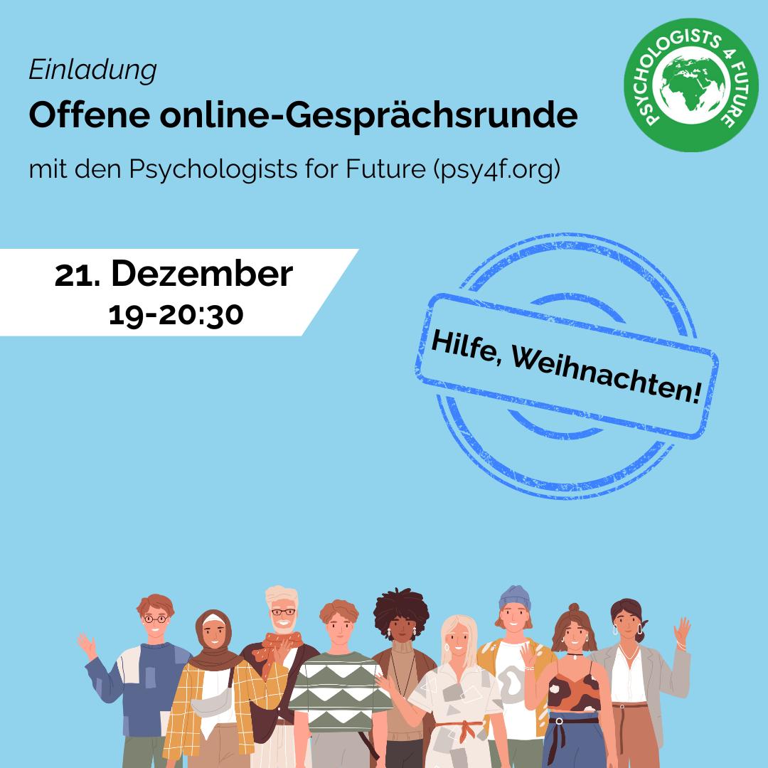 - Offene Online-Gesprächsrunde der Psy4F zum Thema Hilfe, Weihnachten! am 21. Dezember 2025 von 19:00 bis 20:30 Uhr. Mehr Informationen und Link zur Teilnahme unter www.psy4f.org.