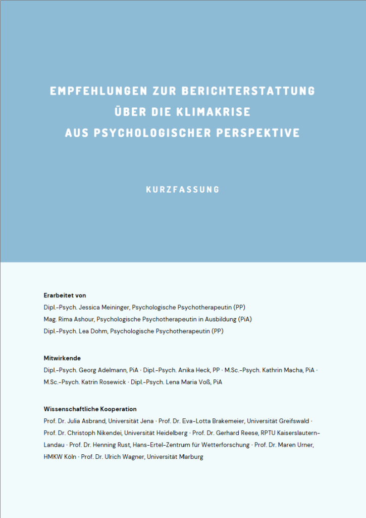 Weitere Informationen zu unseren psychologischen Empfehlungen zur Berichterstattung über die Klimakrise sowie englische Versionen der Empfehlungen finden Sie unter https://medienleitfaden-klima.de.